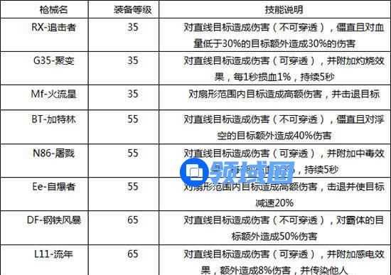 消耗一定的材料,可用之提高枪械等级,技能等级越高,相应技能伤害比例愈大;