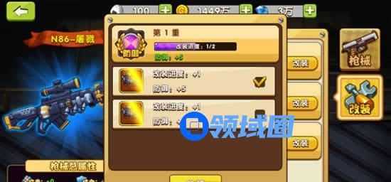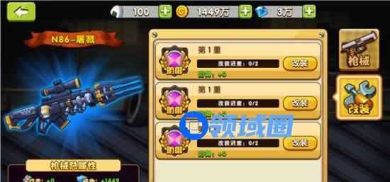 枪械改装,主要是针对枪械的三条属性进行单独的培养升级操作;