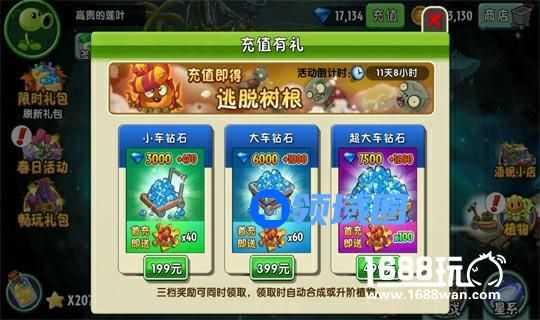 ,就有机会率先将新植物收入囊中。与植树节活动同时出现的是不一样的限时礼包活动:限时宝物和充值有礼,第一期活动时间是3月21日-3月26日,第二期时间是3月27日-4月30日。第一期活动期间,玩家参与限时宝物活动或是在充值有礼活动中进行充值,即可获赠新植物“逃脱树根”,而在第二期活动期间参与活动获赠的是新植物“金缕梅女巫”。还在等什么,快进入春日活动里了解活动详细玩法,快人一步获得新植物来大杀四方吧!