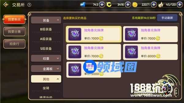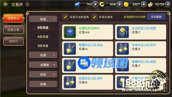 那么,就是看世界啦,很多人上架后会在世界喊的!那么算好上架的时间哦!其他时间就只能不断刷新,碰运气和手速啦!凌晨后第一次1小时刷新,就是所有人公平竞争手速的时候啦,也是一个小技巧哦!我们在抢购中要切记手速一点要快,不然很可能被别人抢先了,在游戏闲暇之余我们不妨蹲交易所,刷新冷却了就去点刷新,这样撒大网才能收获更多的鱼儿。商品上架信息