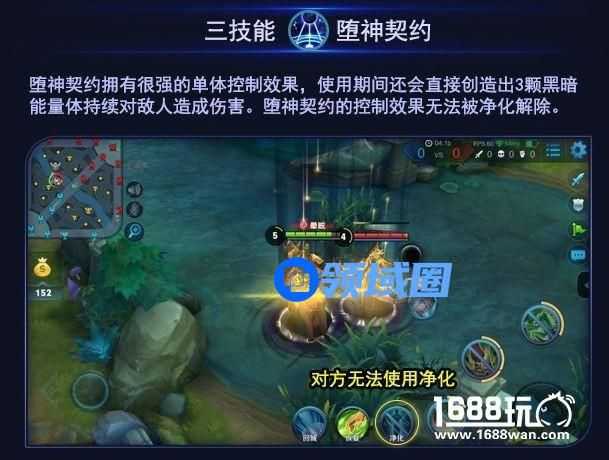 3技能能够控制敌人,造成持续伤害,并且瞬间创造出3颗黑暗球(上限3颗),这个控制甚至连净化都无法解脱,必须吃完所有伤害。这个技能的小技巧是自身受到伤害会令敌人也受到伤害,也就是说,当你在塔下越塔时,凭借防御塔的伤害,也能够在短时间内对敌人造成巨额伤害,而在你用大招期间,敌人对你的伤害也会同时造成被控制对象的伤害,因此,这个是非常恐怖的技能。