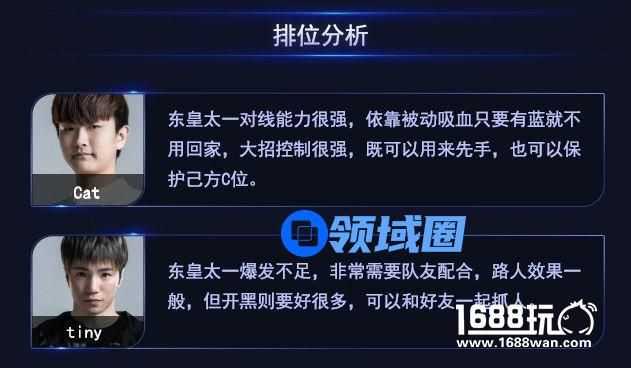 由于东皇太一线上爆发能力不足,而面对线上较为强势的英雄则会略显疲软,加上控制技能的衔接,东皇太一很可能被英雄接上控制,配合打野直接抓死东皇太一,一旦被抓死,东皇太一很难出线,而敌方很可能利用这段时间对其他线的队友造成巨大的困扰。