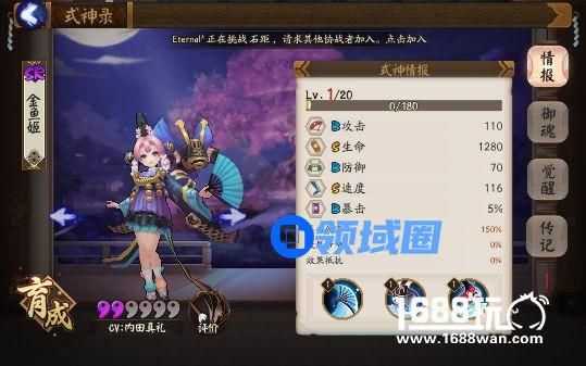 金鱼姬的小金鱼:小金鱼在对面行动8次后进行群体反击,自身也有一个回合(单体攻击)。小金鱼可以推条,沉默,金鱼姬每行动一次都会给小鱼增加一个攻击buff,在这基础上,再加上斗技的buff,小金鱼就会比其他的式神更有效率一些。