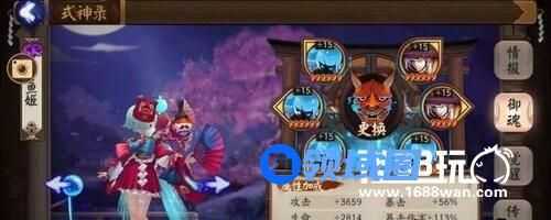金鱼姬解析:我给金鱼姬准备了一套+15爆伤破势,见图4、5。(着重声明,金鱼姬攻击是B,这套御魂在别人身上是+4700,她这里就+3600,可见御魂需求还是蛮大的。)