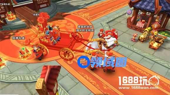 结婚后,选择高档和豪华婚礼的新人可以预约开启迎亲游街。届时,新人将按照固定路线进行婚车巡游,并沿路接受其他玩家们的祝福!游街预约会在每天上午10点开始,新人玩家们需要组队前往NPC姻缘童子处进行预约,预约操作将由队长进行。只能预约当日未开启的时间段,如果当日预约已满则需要次日预约。在游街结束后,新人们可以前往NPC姻缘童子处开启结婚宴席。宴席是公开的,所有玩家均可以参加!在宴席过程中,参加宴席玩家可以采集宴席以获得随机奖励。同时在宴席中会刷新3波捣蛋小贼与招财童子,完成击杀的玩家同样可以获得奖励!