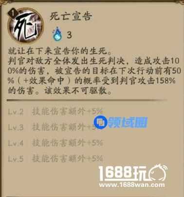 [死亡宣告]生死判决部分的伤害结算调整至目标行动前,并且生效概率受效果命中加成,但生死判决部分的结算伤害不再随等级成长。经过各位大大测试,基本确定了判官大招机制: