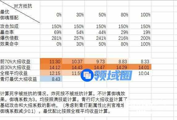 一句话,图表只是一个御魂属性搭配的参考,根据个人需要(前期需要压血线或者配合其它输出后期打伤害),可以适当变动。