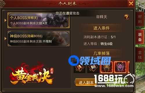 然后就开始出现分支:一种是去打世界BOSS获得神装宝珠和转生丹(副本一天可多次进入只要在地图中即可获得奖励