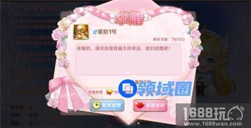 1、可向好友度≥100的异性单身好友发起求婚申请;