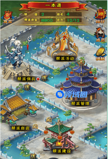 2、成功加入宗派之后,你就可以进入领地去逛逛啦。(当然有的玩家想要奋发图强可以自己创建工会)创建帮会需要50W铜币和100元宝,加上自己喜欢的名字就可以拉