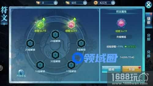 《封仙》的符文孔位共有8个,每通关4层封魔塔解锁1个,换言之通关第32层之后可以全部解锁。除了解锁符文孔位,通关每一层封魔塔都能获得符文宝箱和符文经验作为奖励。此外,每天凌晨零点,系统还会根据玩家角色当前通关的封魔塔层数作为结算,奖励符文精华。