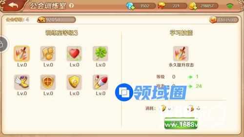 (2)会长或副会长可消耗公会资金提升训练室等级,等级越高,成员可升级技能的等级上限就越高。