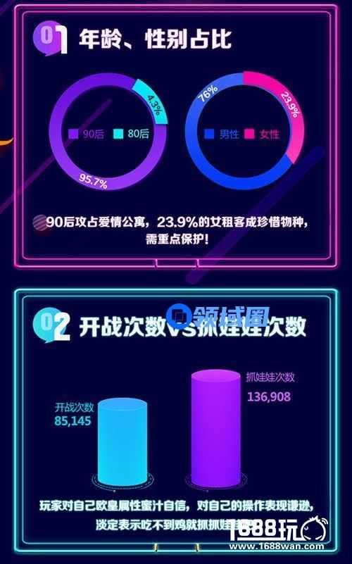 90后在《爱情公寓》里占比95.7%,80后仅有4.3%,恭喜90后成功攻占爱情公寓!其中,爱情公寓女性玩家只有23.9%成珍惜物种,遇到妹纸请记得重点保护!其中多数玩家沉迷抓娃娃,“抓娃娃次数”比“开战次数”多了5万次!欧皇表示操作是什么,反正吃不到鸡就来一起抓娃娃吧!【玩家吕子乔 排行榜三连冠】