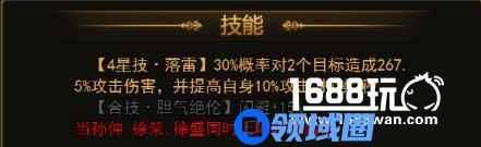 技能四星落雷,30%概率对2个目标造成267.5%攻击伤害,提高自己10%攻击持续2秒。