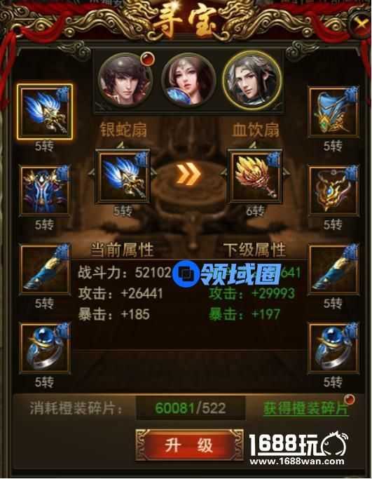 1.寻宝:寻宝可获得大量橙装碎片,更有几率开出高等级转生橙装。