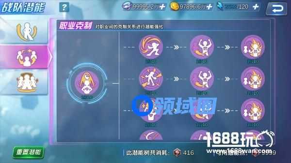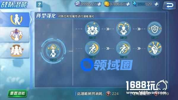战队的潜能点共分3个阶段,第一个阶段为阵型强化、第二个阶段为职业克制、第三个阶段为职业强化。每个阶段投入的潜能点达到指定数量,方可解锁下一个阶段。