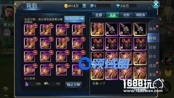 每日的活跃活动可以领取三个符印,使用后可以省去三个格子。其他,诸如经验药水、讨伐令、buff酒等等都可以直接使用,转化成对应的经验任务buff存放在各自的系统中。另外,经验药水每日有使用上限,可要记得使用合成再食用高级道具,而符印有12小时的有效时间。这项功能主要用于装备分页,将低级、不适合的装备分解为升品精华、洗炼粉尘以为后续加强装备使用,既可以减少背包的容量又可以为后续保值。