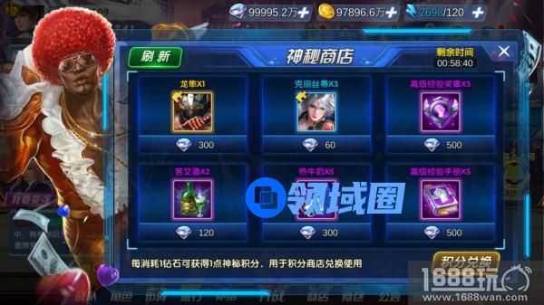 神秘商店中,玩家每消耗1钻石即可获得1点积分,获得的积分点在积分商店也可兑换超值游戏道具哦!