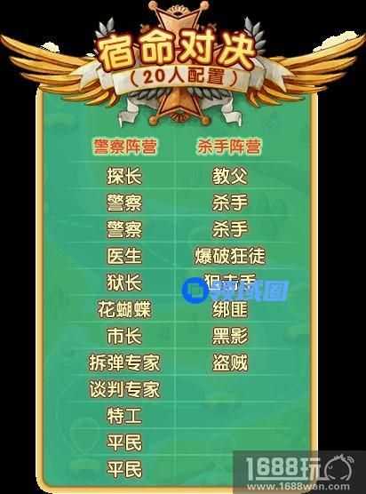 宿命对决20人场次的职业配置可从下方表格中浏览:职业:探长(TZ)