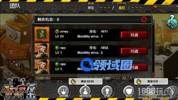 战役模式可以理解为传统意义上的章节推图,共分为16个章节。在对战的同时,将从莫丁军的反叛到消灭外星人,为大家重新讲述合金弹头系列的故事。每次战斗后都能获得相应的对战奖励,首次通关每个章节还能获得强力作战单位。战役模式是玩家收集单位培养道具的最好方法之一。