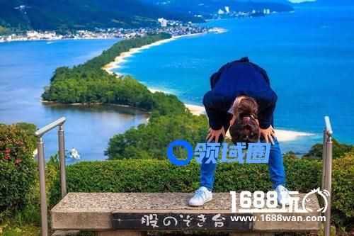 再看这张照片,背景是固定的,但如果有小伙伴出镜,呱娃子会做出个倒立动作,相当可爱。而远处的景点正是日本著名的“天桥立”。