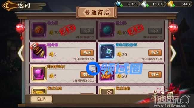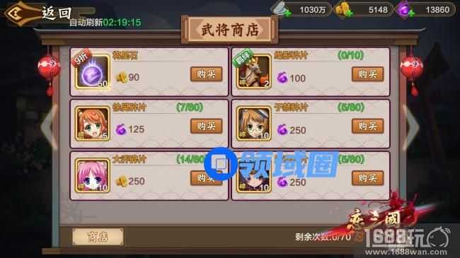 玩到中期,每天一定要刷武将商店。这里给大家普及一下,武将商店有可能出完整的武将,最便宜也要2000魂石或者判金;所以你的魂石没有存到2000+就不要去刷商店了,不然结果很悲剧的;如果一不小心刷到了想要的橙将,而没有足够的魂石,那就坐着哭吧!