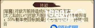 太乙仙剑:对前排造成139%的物理伤害;35%概率眩晕吴彪持续1回合。