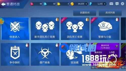 以及最多可6人组队的PVP乱斗模式。其中3V3死斗竞技场是游戏最基本的玩法,一局对战的时间大概只有五分钟。模式有死亡竞赛,警察与小偷,僵尸病毒,捉迷藏等。