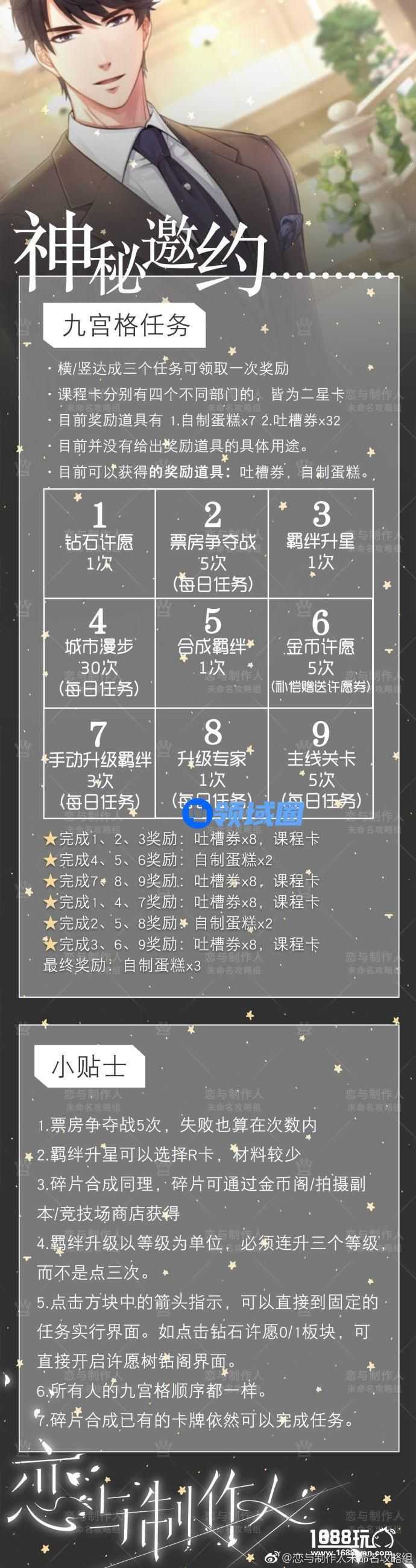 开启。活动在1月5日维护后~1月9日23:59会开放,很多小伙伴想得到李泽言生日活动神秘邀约,但是不知道怎么获得?那么小编就给大家带来最全的李泽言生日活动神秘邀约全攻略。让大家和李泽言一起开开心心过生日。