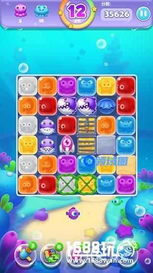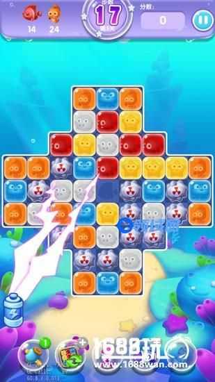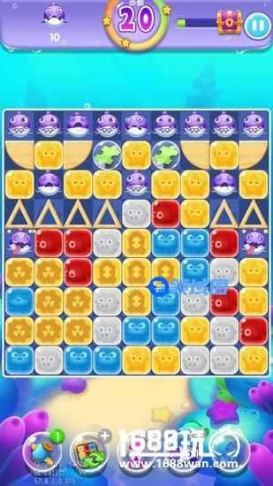 在游戏中玩家只需要点击两个或以上的同色方块即可消除,关卡中设置的鲨鱼可通过鲨鱼旁边的元素即可击败鲨鱼。游戏中的其他障碍物也可采用同样的方式消除。高难度的障碍物则需要在消除指定数量的元素之后产生道具,使用道具消除效果解除障碍。2.如何产生道具