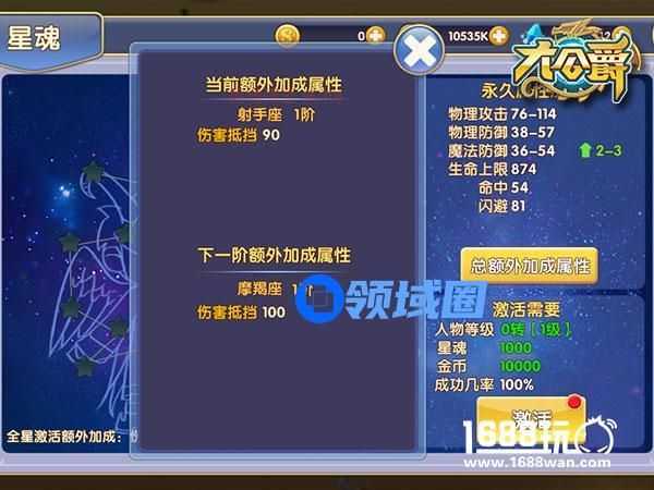 宿命之谜,星魂揭秘。星魂系统是《大公爵》中提升角色属性的另一大系统,角色通过激活星魂系统即能额外带来属性的加成。源自神秘而又古老的星座之谜,源自强大力量的更高追求,《大公爵》星魂系统满足您更远大的追求。在《大公爵》中,当角色满足激活星魂条件时,玩家们可以从【角色-星魂】进入系统,可以清楚的看到,星魂系统中分布着十二大星座,每一个星座都等待着您前往激活,并对其加以提升,从而得到额外属性的加成。当然,激活所有的星座还有更强大的额外属性等着您!