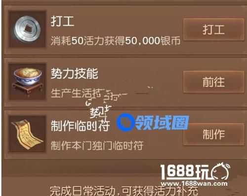 三国如龙传赚银币最好的方法是修炼势力技能,但是打造技巧、裁缝技巧、炼金技巧、炼丹制药、烹调料理也可以获得很多的物品。每日完成相应的活动可以获得活力,然后在银币摆摊出售这些物品,可以获取丰厚的银币,也可以用活力来打工获取银币。