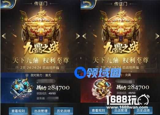 玩法:先了解玩法非常重要,不然一进去你什么都不懂,这里主要也是占领建筑,和皇城差不多,我们要抢占九鼎和炎黄之殿(红方)、蚩尤战堂(蓝方)、医馆、要塞,等等建筑,占领的多积分就越多,在1小时30分钟结束后谁的积分高谁的联盟就赢了,这只有两个联盟直接的切磋,盟主可以放50个人进去战斗,点击传送门就可以进去了。