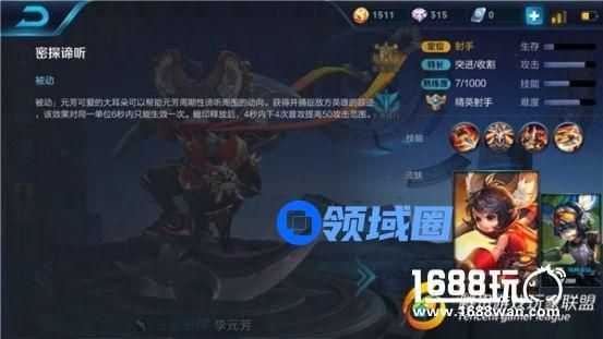 解析:被动技能可以让元芳在打野的时候观察敌方英雄走向,由于排位模式中没有战争迷雾,所以监听能力效果不是特别突出,但是暗印释放后提升普通攻击射程倒是非常不错的一个属性,能够显著提升李元芳的生存能力。