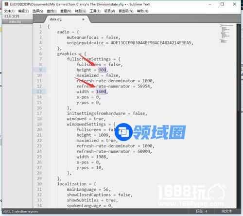 2.用记事本打开文件夹中的state.cfg配置文件,将这两项分别修改为height 900和width 1600。其中fullscreen最好设置为