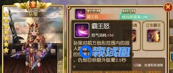 孙策的必杀技能造成不俗伤害的同时还会群体减怒!注意是群体!同时额外晕眩目标单体有木有!!三国终于有个强力的T了。江东小霸王的怒吼,果然不输张飞。