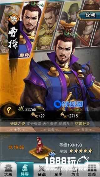 反之,武侍姬的天赋是提高本队武将的基础气血和闪避,减少伤害值,那么就要将其和曹操、刘备等防御型武将搭配在一起,使这些武将的生存能力更加顽强,确保本队的持续输出能力。