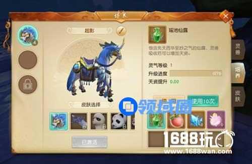 天下手游灵兽培养:该界面,玩家可以看到和灵兽培养有关的道具,有瑶池仙露、灵光果子、灵光宝珠、灵兽再生露。