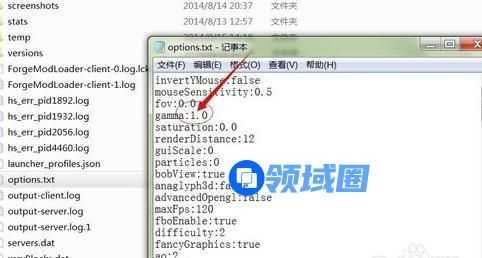 将里面的第四个(gamma:1.0)里的1改成15,(就是物品亮度,火把亮度是15,太阳亮度是16,本人建议还是15,不要太大误差)