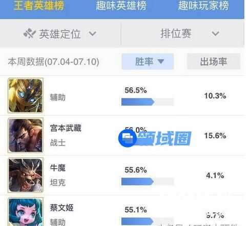 目前这个英雄已经登上了排位赛胜率榜的第一位,超过了长期统治榜首的牛魔和宫本武藏。(07.02-07.08的胜率甚至达到59.96%)