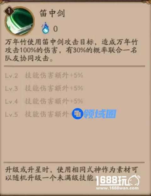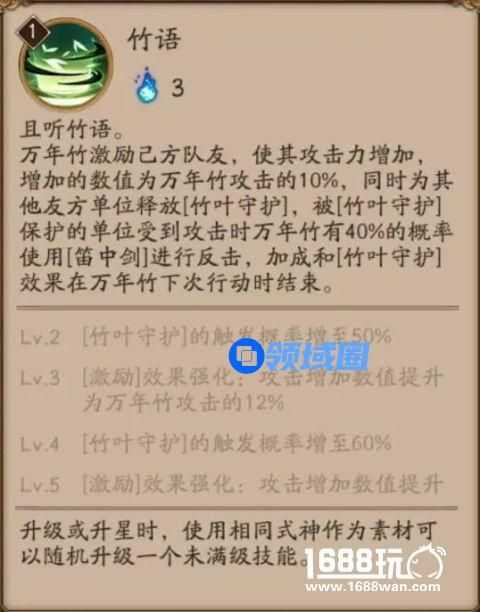 式神总述万年竹是拥有着高超吹笛技艺的妖怪。虽然表面上他讨厌别人打断他的演奏,但事实上他却非常欣赏能听懂他笛声的人。