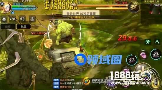 【石人蒙塔技能招式:7:全屏毒云】石人蒙塔的血量剩余三管左右的时候将会释放大招“全屏毒云”,有点类似于石人拉巴的“岩浆世界”大招,一旦被其命中所受到的伤害可是难以估量的。此时小伙伴们的躲避方法就是站在四周的高台上,不过由于高台上有幽灵花防守,我们只有在“全屏毒云”技能释放之前将幽灵花清除,才能不受本技能的伤害。