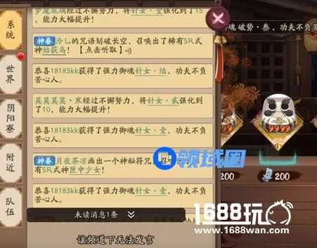 购买御魂盒之后会在世界频道上面有公告,恭喜xx获得了强力御魂,功夫不负有心人。