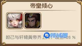 2、帝皇倾心:与轩辕黄帝齐上阵,攻击+26%