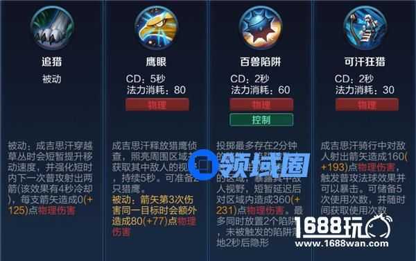 解析:这个技能颠覆了传统意义上的普攻,让成吉思汗在移动中、射击中可以同时释放三技能。要知道一般射手就是靠普攻吃饭的,而成吉思汗能一秒三箭(草丛普攻接三技能,草丛中可以触发被动追猎,一次射两箭),瞬间触发出一技能的被动,打出爆发型射手应有的风采。