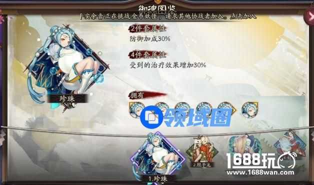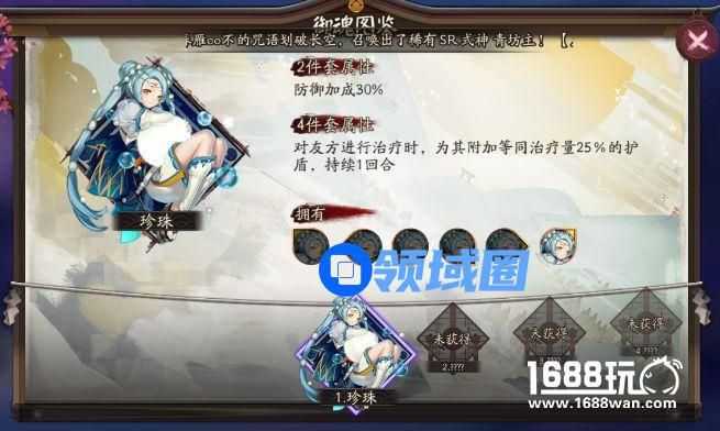 珍珠4件套属性适用阵容:后手队奶妈式神,如桃花妖、花鸟卷、樱花妖等。