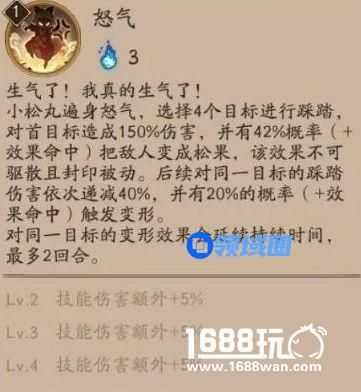 小松丸的大招是第一段选目标攻击,之后三段随机,类似二口女。每次命中同一目标的伤害递减,有概率变形。魂十二速或者尾速时,小松丸一般可以攻击至少两个目标,两下150%的攻击伤害有1万+足够打残甚至打死小怪了。