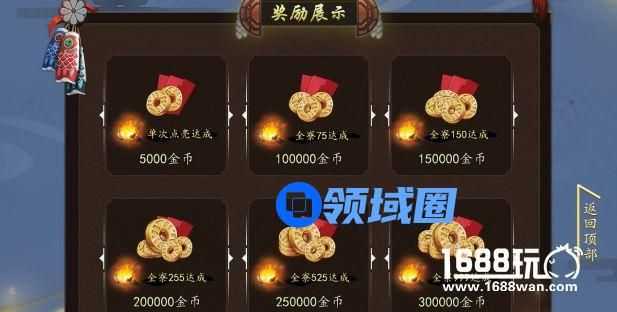 4、阴阳寮总点亮数达到以下次数时,可以获得额外的金币奖励。