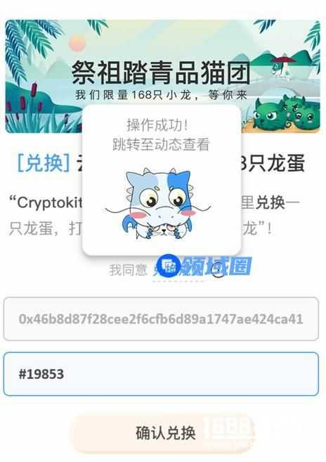 进入活动,仔细阅读兑换规则,确认就可以开始兑换了。输入您准备好的钱包地址以及你想兑换的猫咪的编号,例如kitty19853,编号就是“19853”啦。点击确认兑换,操作成功会弹出操作成功信息,你可以在动态中查看兑换状态,矿工运算需要时间,预计10分钟内会发放给您斗龙,请耐心等待。您就的斗龙会被发放到“我的斗龙”中,点击右上角按钮在“我的斗龙”查看。Q:获得的0代小龙有什么用?