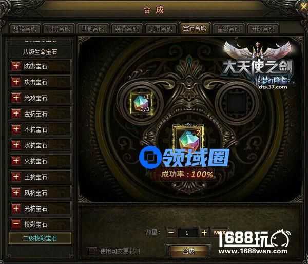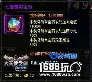 在37《大天使之剑》中,当前棱彩宝石的最高等级为七级,也就是说,当玩家将宝石提升为七级的时候,也是将宝石属性提升到最大化的时候,这时再将宝石镶嵌于装备上,能为装备增加非常高的属性,温馨提醒,一件装备最多可镶嵌四颗棱彩宝石哦!那么,要怎么样才能将宝石升级呢?和37《大天使之剑》的宝石升级玩法一样,首先,玩家可用3颗低级的宝石合成1颗高级宝石,在第3、6级宝石合成时,则需要添加棱彩宝石合成符,游戏中,每一件可镶嵌的材料都有其相对应的位置,棱彩宝石只能镶嵌在棱彩宝石孔中。